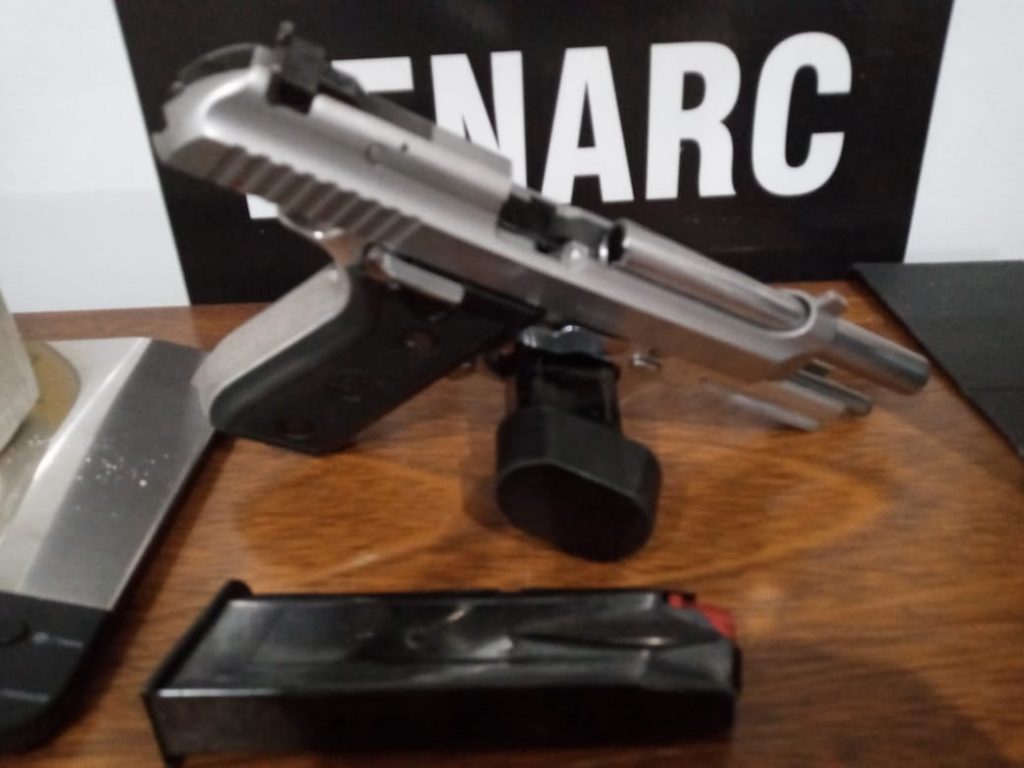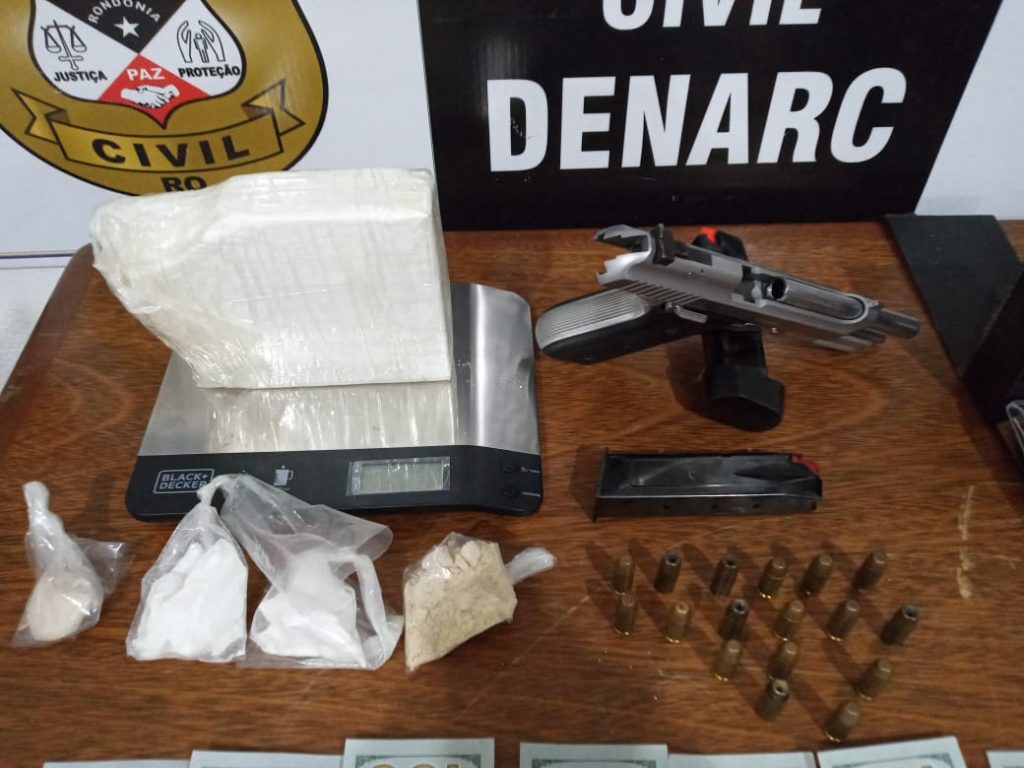 Policiais civis lotados no Departamento de Narcóticos (Denarc) prenderam no início da noite desta quarta-feira (17), na Rua Emídio Feitosa, bairro Cidade do Lobo, Zona Sul de Porto Velho, o traficante Francisco Ferreira Lopes, o “Mika”. “Mika”, que foi um dos 10 primeiros a entrar no sistema prisional no ano de 1999, inaugurando o presídio, foi preso com uma pistola ponto 40, grande quantia em dinheiro, tanto em Real quanto em Dólar, munição e quase 1 quilo de cocaína, com grande teor de pureza. Os policiais cumpriram mandado de busca e apreensão que resultou na prisão em flagrante do traficante, que volta a fica à disposição da Justiça. Após 20 anos na rua, “Mika” vai adentrar novamente ao sistema prisional.