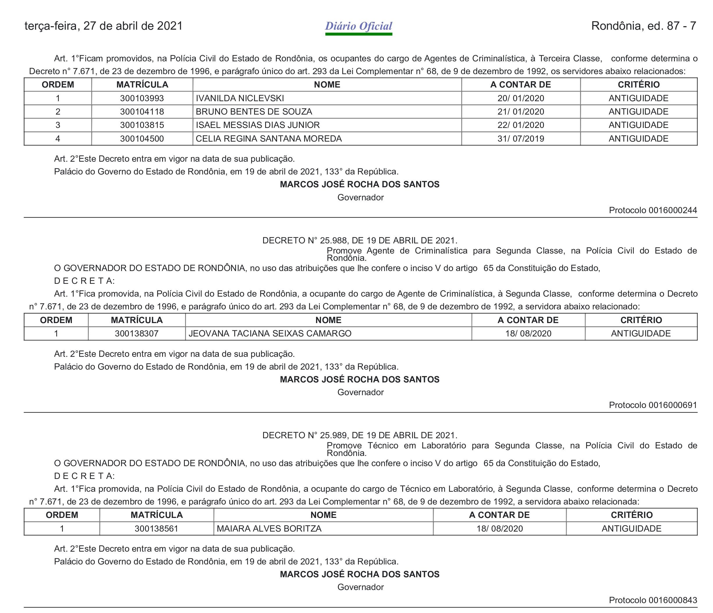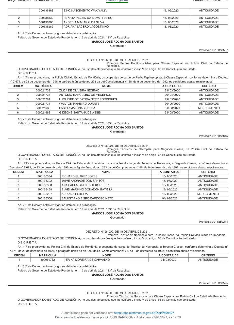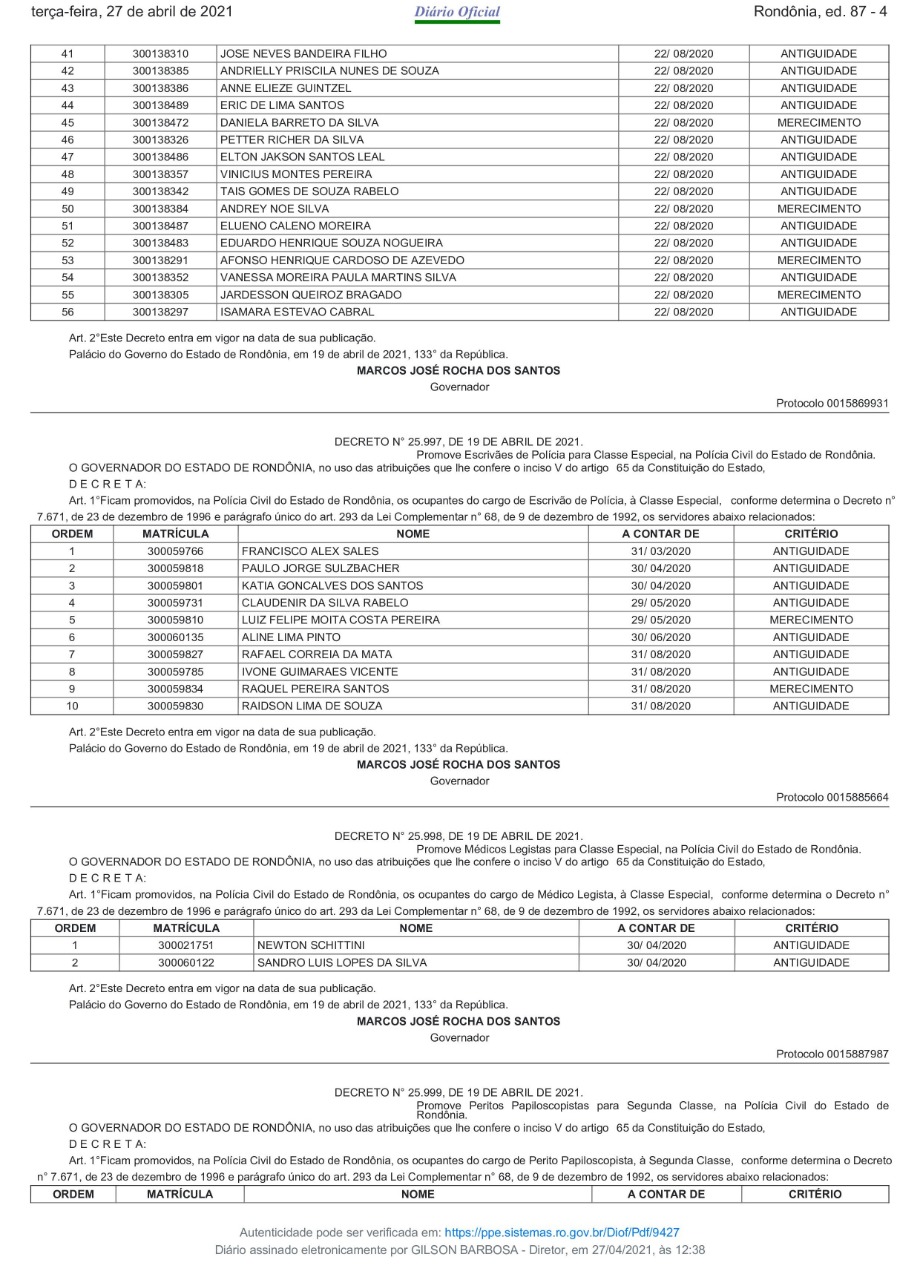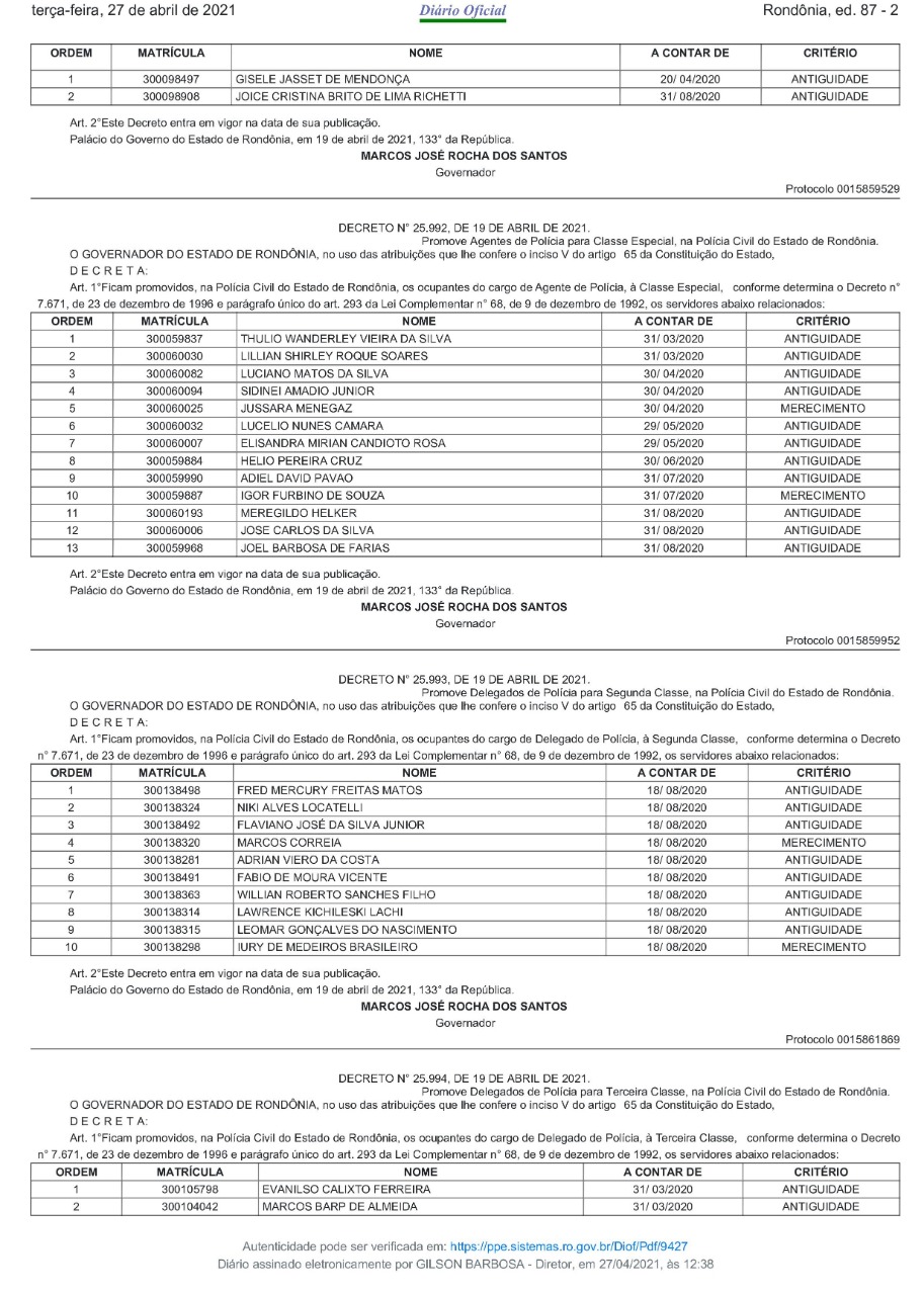 O sindicato dos Servidores da Polícia Civil do Estado de Rondônia (SINPOL-RO), confirma para seus filiados a implantação em Folha de Pagamento da promoção da Polícia Civil, tendo como previsão o mês de junho de 2021, referente ao processo de setembro de 2020.