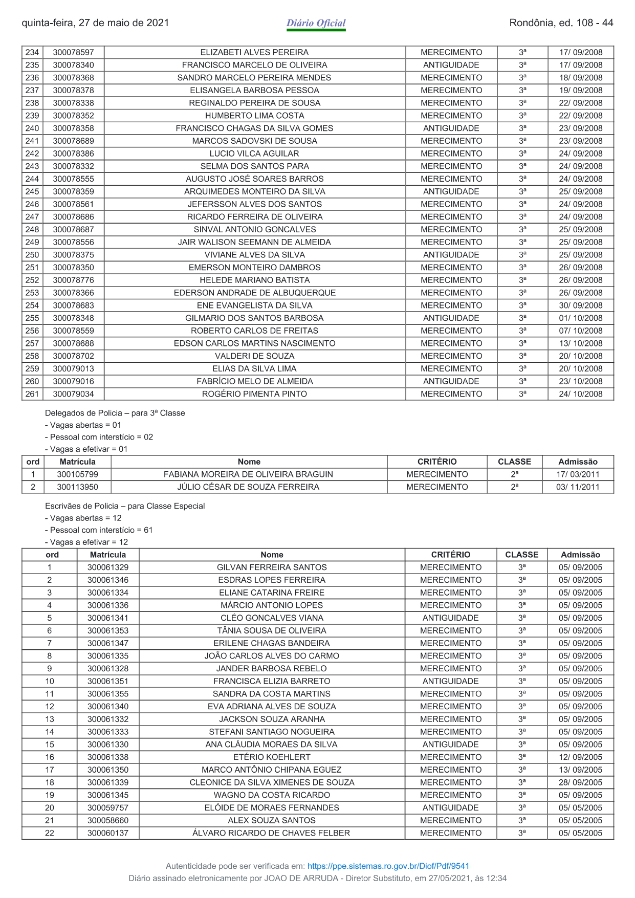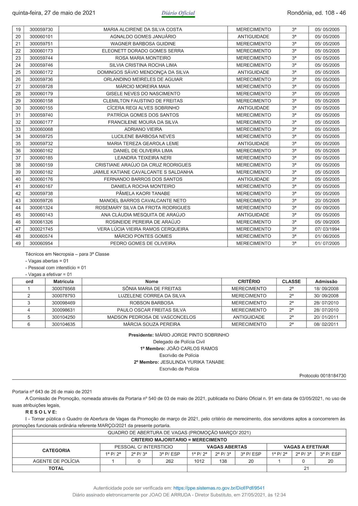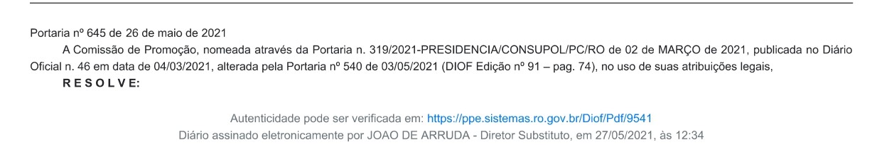 A diretoria do SINPOL-RO torna público aos filiados interessados, a RELAÇÃO GERAL DOS SERVIDORES QUE SERÃO PROMOVIDOS no processo de MARÇO DE 2021.