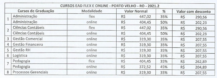 O convênio atende os beneficiários concedendo os seguintes descontos: