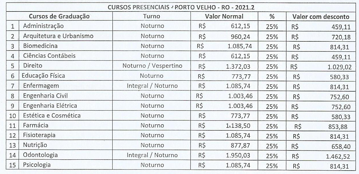 O convênio atende os beneficiários concedendo os seguintes descontos:
